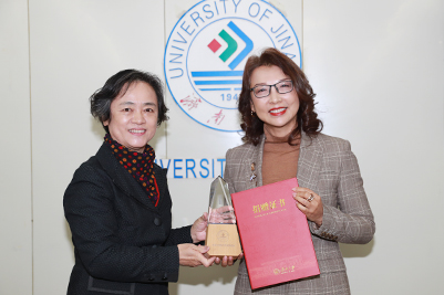 捐贈儀式結束后,盛軍嶺校友與母校師生進行了座談,她深情回顧了自己在母校濟南大學求學的青蔥歲月,感恩母校對自己的培養和對自己事業的幫助,介紹了設立“濟南大學—才良助學金”的淵源和初衷,勉勵接受“才良助學金”資助的師弟師妹們努力學習,爭取以優異的成績畢業回報社會和母校。