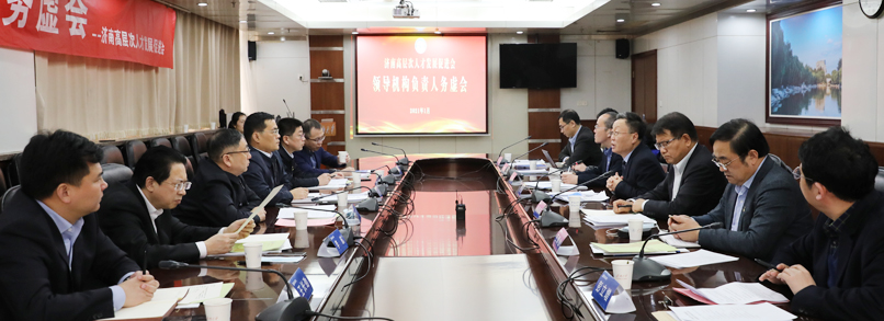 1月15日,濟南高層次人才發展促進會領導機構負責人務虛會在我校召開。濟南市委組織部副部長韓洪強,濟南市委組織部人才工作處副處長王長勁,濟南高層次人才發展促進會(以下簡稱促進會)會長、山東大學國家糖中心主任凌沛學,促進會副會長、濟南大學校長張士強,促進會監事長、山東高速集團有限公司黨委常委、副總經理李航,國家計劃特聘專家、泰山學者、泰山產業領軍人才等全體領導機構負責人及下設聯盟理事長、秘書處工作人員參加會議。會議由泰山產業領軍人才、濟南愛思醫藥科技有限公司董事長、促進會秘書長彭立增主持。