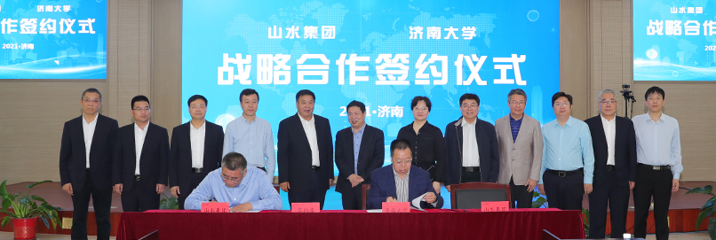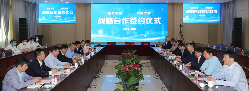 5月14日上午,山東山水水泥集團有限公司與濟南大學戰略合作協議簽約儀式在山水集團舉行。濟南大學黨委書記徐景顏,副校長劉宗明,副校長李光紅,山水集團總裁李會寶,黨委書記、副總裁王明波及集團有關領導出席簽約儀式。學校黨委辦公室、商學院、材料科學與工程學院、自動化與電氣工程學院等部門和學院負責同志參加簽約儀式。簽約儀式由山水集團副書記、副總裁張繼武主持。