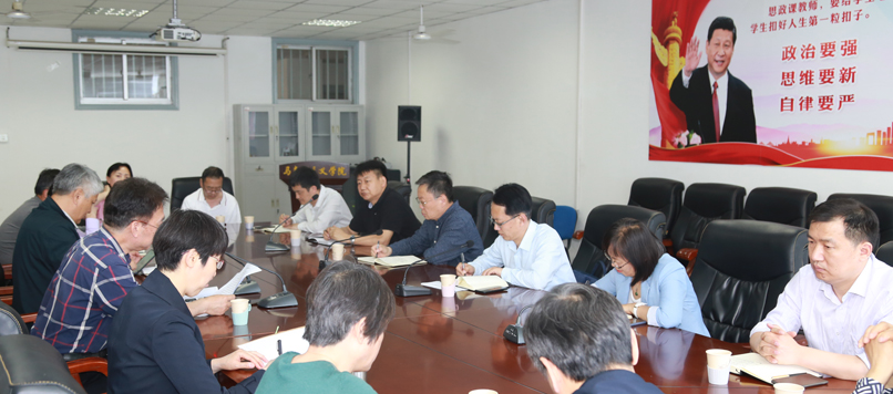 5月24日,為深化學校思政課改革創新,校長張士強到馬克思主義學院調研,實地察看了省思政課教學名師“李朋忠工作室”和“楊立志工作室”建設情況,并召開思政課建設座談會。黨委辦公室、校長辦公室、黨委宣傳部、馬克思主義學部、黨委教師工作部、教務處、馬克思主義學院負責人以及各教研部主任等參加了活動。
