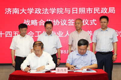5月31日,政法學(xué)院與日照市民政局戰(zhàn)略合作協(xié)議簽約儀式暨十四五社會工作專業(yè)人才培養(yǎng)學(xué)術(shù)研討會在濟(jì)南舉行。學(xué)校副校長劉宗明,山東省民政廳慈善事業(yè)促進(jìn)和社會工作處三級調(diào)研員王建武,日照市民政局黨組書記、局長王錄聯(lián),日照市民政局黨組成員、副局長丁志強(qiáng),日照市財(cái)政局、各縣(區(qū))民政局、社區(qū)發(fā)展服務(wù)中心負(fù)責(zé)同志和政法學(xué)院師生代表參加了活動。