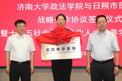 簽約儀式上,劉宗明副校長和王錄聯(lián)局長共同為“濟(jì)南大學(xué)實(shí)踐教學(xué)基地”揭牌,王建武和社會學(xué)系主任張榮為“濟(jì)南大學(xué)研究生聯(lián)合培養(yǎng)基地”揭牌,丁志強(qiáng)副局長和學(xué)校合作發(fā)展處處長盧旺為“濟(jì)南大學(xué)社會實(shí)踐基地”揭牌。丁志強(qiáng)副局長和政法學(xué)院黨委書記徐慶國共同簽署了“濟(jì)南大學(xué)政法學(xué)院與日照市民政局戰(zhàn)略合作協(xié)議”,丁志強(qiáng)副局長向政法學(xué)院副院長劉康磊授予“日照市社會工作專業(yè)人才培訓(xùn)基地”牌照。