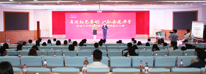 為進一步加強學校輔導員隊伍專業化建設,提升輔導員的理論水平和育人能力,確保輔導員在黨史學習教育中能先學一步,深學一層,5月28日,“賡續紅色基因,汲取奮進力量”濟南大學第四屆輔導員素質能力大賽決賽在第一學術報告廳舉行。學校黨委副書記張碩秋出席活動,中國高等教育學會常務理事、輔導員工作研究分會秘書處辦公室主任,教育部高校思想政治工作隊伍培訓研修中心(山東大學)辦公室主任,《高校輔導員》常務副主編、編輯部主任夏曉虹,山東省高校德育研究中心主任、山東師范大學黨委宣傳部部長姚昌,齊魯工業大學學生工作處處長劉傳波,山東農業大學學生工作處處長王群,山東建筑大學學生工作處處長李展,學校黨委常委、黨委宣傳部部長賈海寧、團委書記孫菲菲和黨委學生工作部(處)副部(處)長劉芝擔任比賽評委,來自兄弟高校中國海洋大學、山東農業大學學生工作人員代表以及學校全體學生工作人員觀摩了比賽。