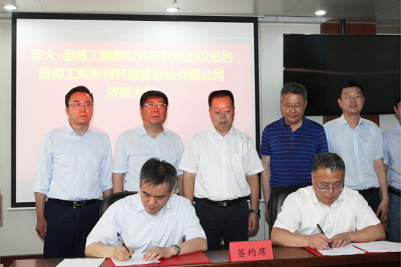 6月8日下午,濟南大學與淄博工陶新材料集團股份有限公司(以下簡稱淄博工陶)共建“濟大-淄博工陶新材料研究院”簽約儀式在我校舉行。淄博工陶副董事長張同劍,黨委書記吳光輝,總經理助理張文濤,我校黨委書記徐景顏,副校長劉宗明出席活動。學校科技處、科技成果轉化辦公室、材料科學與工程學院負責同志及相關人員參加了活動。簽約儀式由科技處處長黃加棟主持。