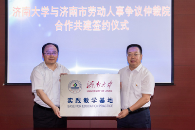 簽約儀式上,濟南市勞動人事爭議仲裁院綜合處處長于濤與濟南大學(xué)政法學(xué)院人力資源與社會保障系副主任劉艷麗共同簽訂《濟南大學(xué)與勞動人事爭議仲裁院戰(zhàn)略合作協(xié)議框架書》《濟南大學(xué)與濟南市勞動人事爭議仲裁院合作協(xié)議書》《濟南大學(xué)與濟南市勞動人事爭議仲裁院共建研究生聯(lián)合培養(yǎng)基地協(xié)議書》;市仲裁院立案庭庭長張允明與濟南大學(xué)政法學(xué)院人力資源與社會保障系黨支部書記辛瑞萍簽訂《黨支部結(jié)對共建協(xié)議書》。劉宗明副校長和郭震院長共同為“濟南大學(xué)實踐教學(xué)基地”、“濟南大學(xué)與濟南市勞動人事爭議仲裁院研究生聯(lián)合培養(yǎng)基地”揭牌。