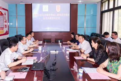 6月11日,濟南大學(xué)與濟南市勞動人事爭議仲裁院戰(zhàn)略合作協(xié)議簽約儀式在濟南市勞動人事爭議仲裁院舉行。濟南大學(xué)副校長劉宗明,濟南市勞動人事爭議仲裁院院長、黨支部書記郭震,濟南市仲裁院有關(guān)負責(zé)同志和我校政法學(xué)院師生代表出席了本次活動。簽約儀式由市仲裁院立案庭庭長張允明主持。